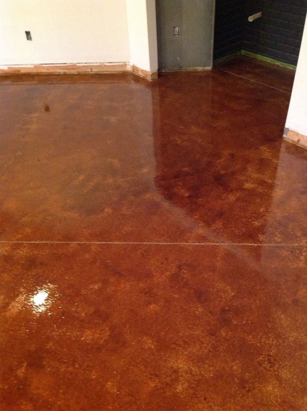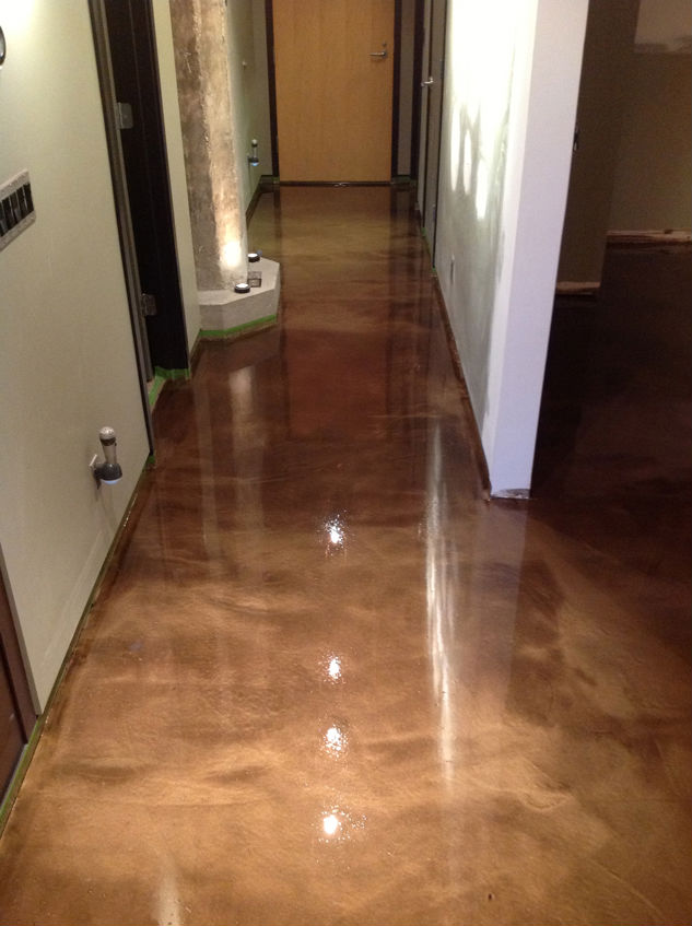 Residential Application - Stained Concrete: Elegant, Durable, Customizable. Add an attractive, unique look to your living space with finished concrete, and enjoy the ease of care, maintenance and long life of finished concrete. 2