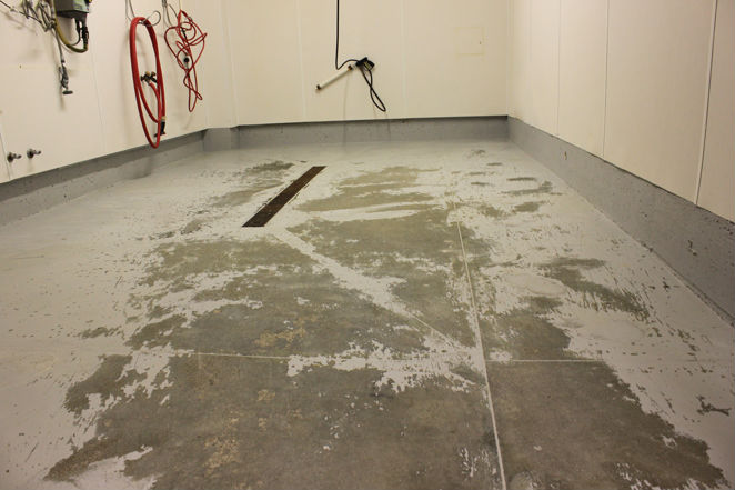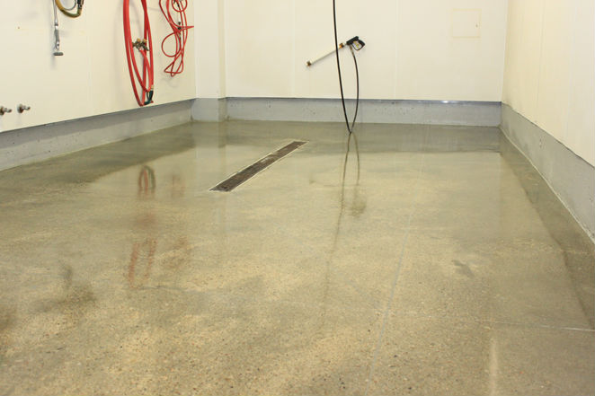AFTER Condition - Old coating removed, concrete polished. The floor will now handle the heavy traffic and chemicals for a much longer duration before showing signs of wear. Floor is also slip resistant, even when wet. Additionally, the room is brighter due to the reflectivity of the floor, enabling the operator to be more effective with cleaning duties. Low maintenance and ease of cleaning are additional benefits of this type of floor treatment.