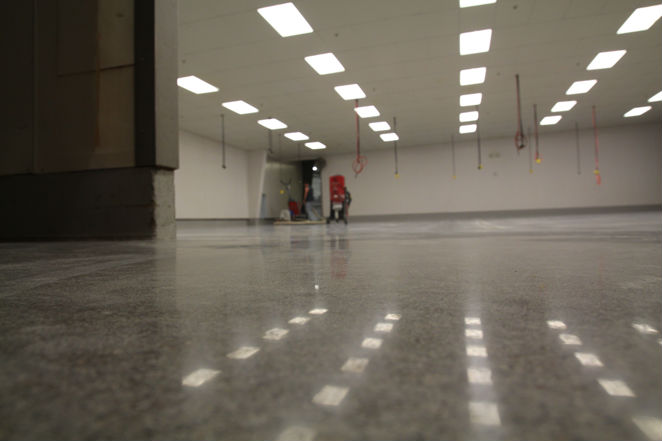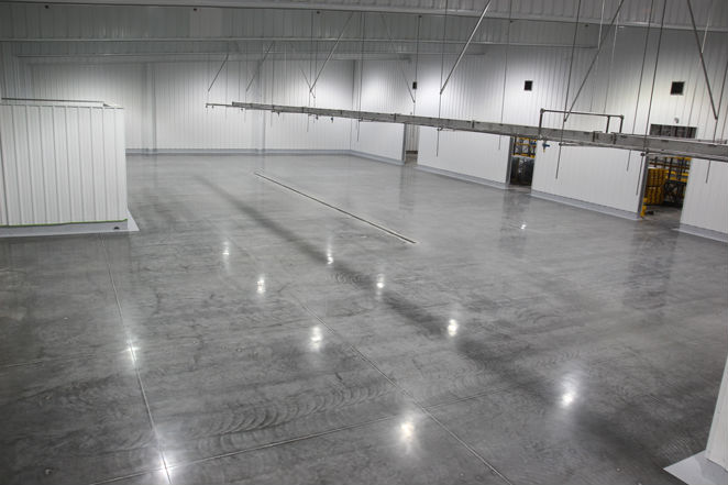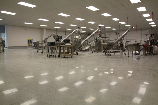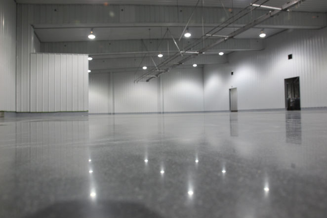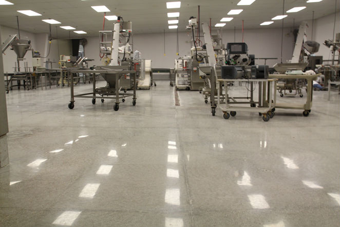 Industrial Projects - Polished Concrete: GREEN, Inexpensive and fast compared to other flooring options. Low maintenance and easy to clean. Creates moisture barrier, resists scratching and staining. Slip resistant and light reflective. Long lasting and suited for heavy use. Becoming very popular in medical facilities and food production. This application is ideal for most types of production and manufacturing. 2
